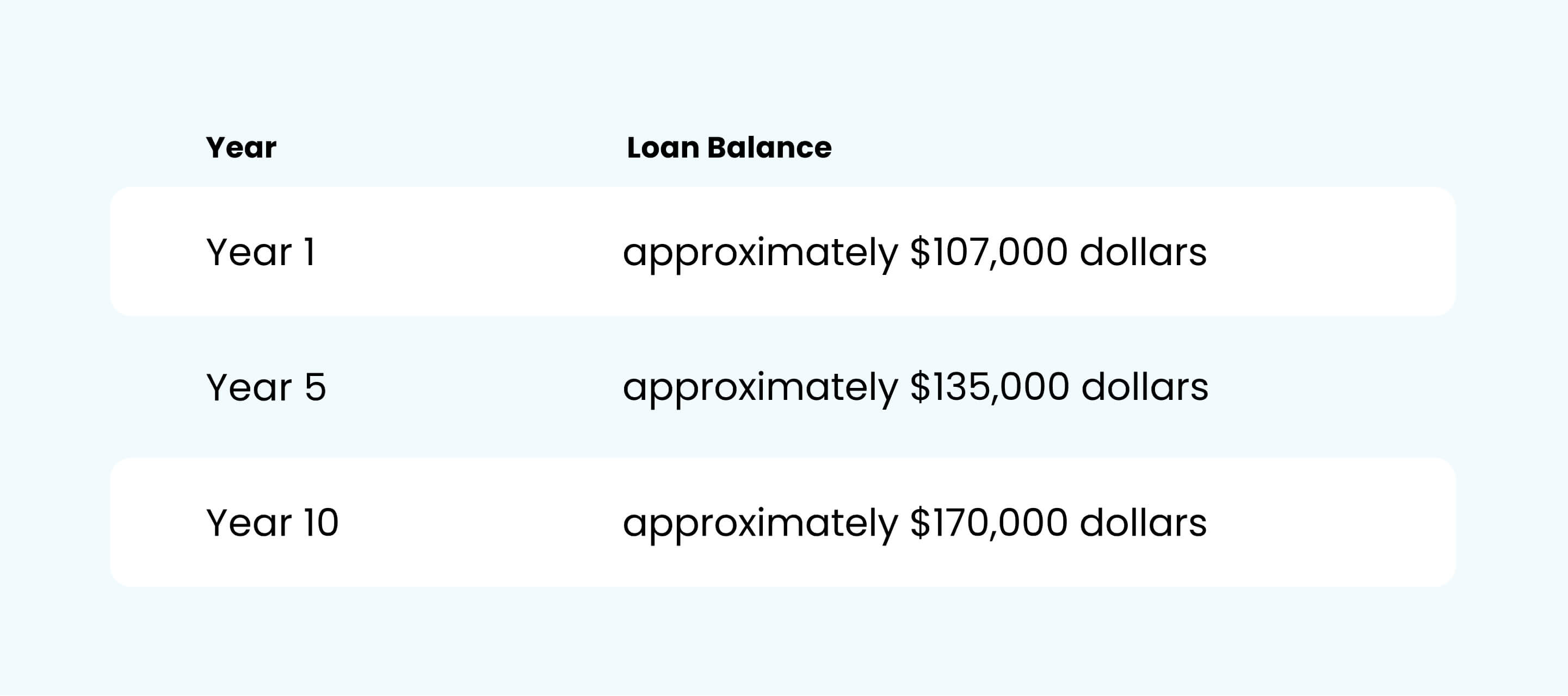 Starting loan amount $100,000 dollars. The interest rate is 7.00% per annum, compounding.
